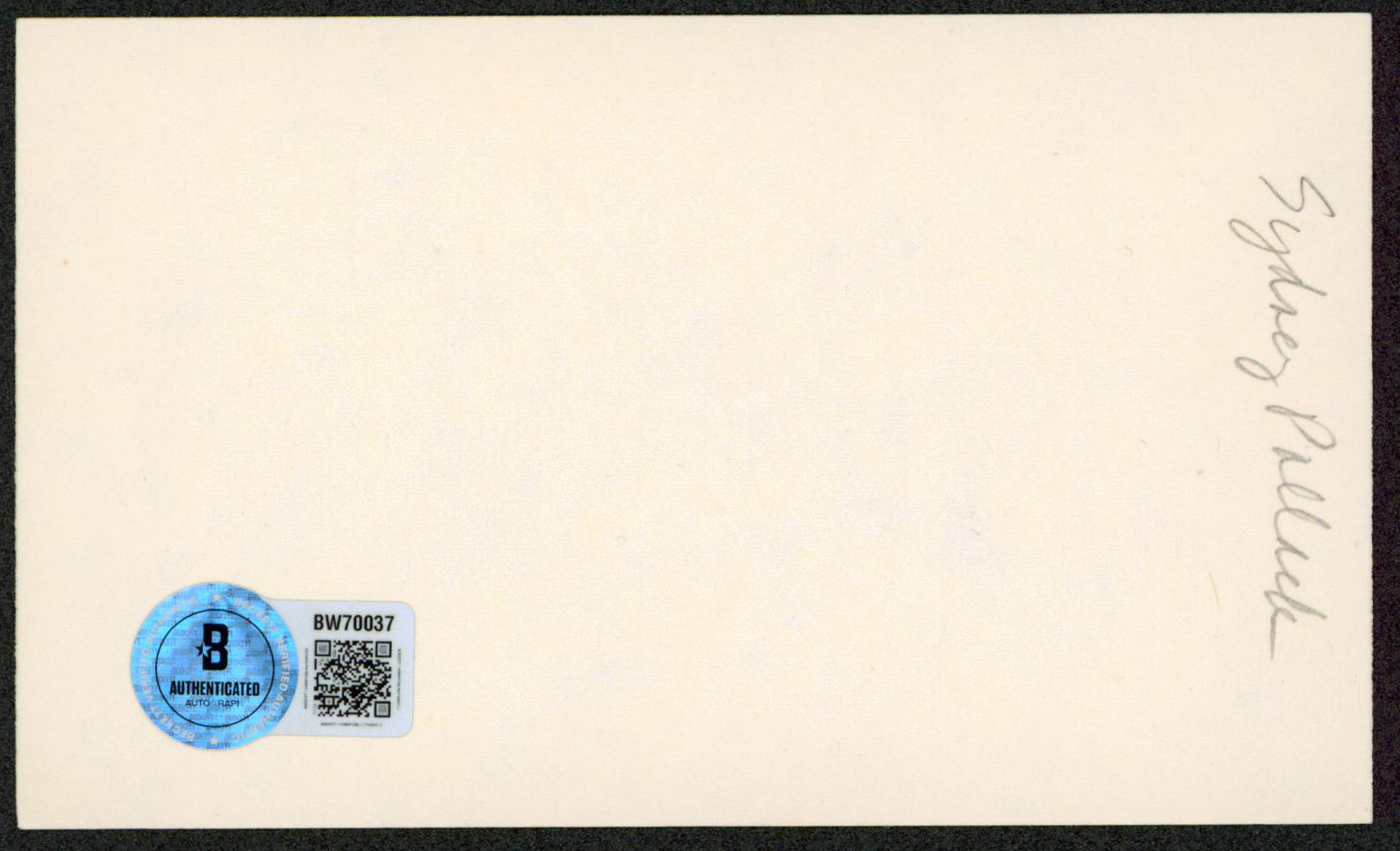 This Autographed 3x5 Index Card has been Personally Signed by Sydney Pollack of Out of Africa. This item is 100% Authentic to include a hologram by Beckett Authentication Services. This item will come with an affixed Beckett Authentication Services (BAS) authentication sticker, which includes a scannable QR code to verify authenticity. Please note that Beckett no longer provides serial-numbered COA cards, and the attached BAS sticker will serve as the complete authentication for this item. The authenticity can be verified on Beckett Authentication Services website.