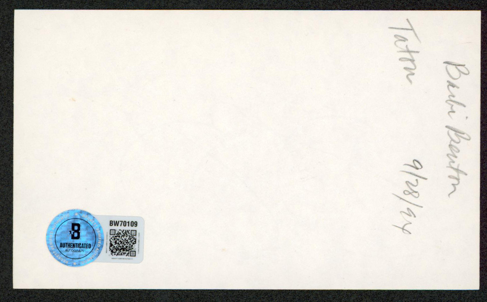 This Autographed 3x5 Index Card has been Personally Signed by Barbi Benton of X-Ray. This item is 100% Authentic to include a hologram by Beckett Authentication Services. This item will come with an affixed Beckett Authentication Services (BAS) authentication sticker, which includes a scannable QR code to verify authenticity. Please note that Beckett no longer provides serial-numbered COA cards, and the attached BAS sticker will serve as the complete authentication for this item. The authenticity can be verified on Beckett Authentication Services website.