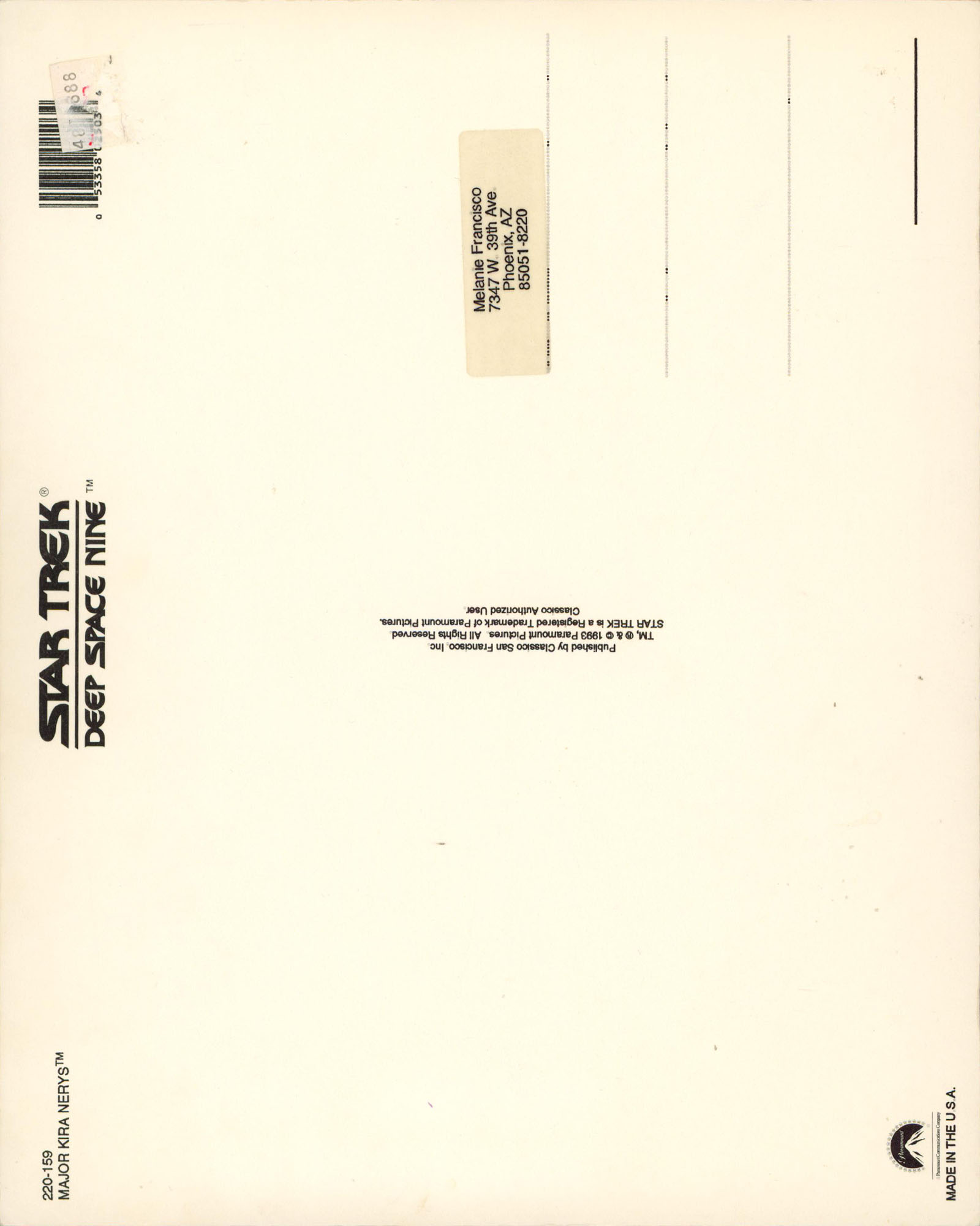 This Autographed 8x10 Postcard has been Personally Signed by Nana Visitor of Star Trek: Deep Space Nine. This item is 100% Authentic to include a hologram by Beckett Authentication Services. This item will come with an affixed Beckett Authentication Services (BAS) authentication sticker, which includes a scannable QR code to verify authenticity. Please note that Beckett no longer provides serial-numbered COA cards, and the attached BAS sticker will serve as the complete authentication for this item. The authenticity can be verified on Beckett Authentication Services website.