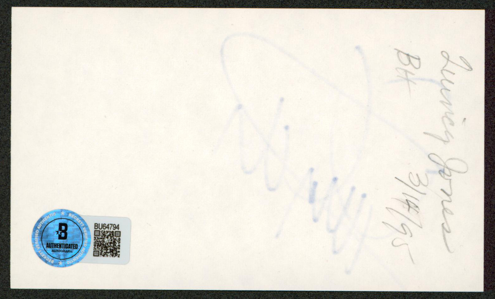 This Autographed 3x5 Index Card has been Personally Signed by Quincy Jones of Fresh Prince of Bel-Air. This item is 100% Authentic to include a hologram by Beckett Authentication Services. This item will come with an affixed Beckett Authentication Services (BAS) authentication sticker, which includes a scannable QR code to verify authenticity. Please note that Beckett no longer provides serial-numbered COA cards, and the attached BAS sticker will serve as the complete authentication for this item. We have multiples of this same item. While the photographs are representative of this item, the size, placement and strength of the signature may vary. Each item is hand signed, therefore, each autograph is unique.