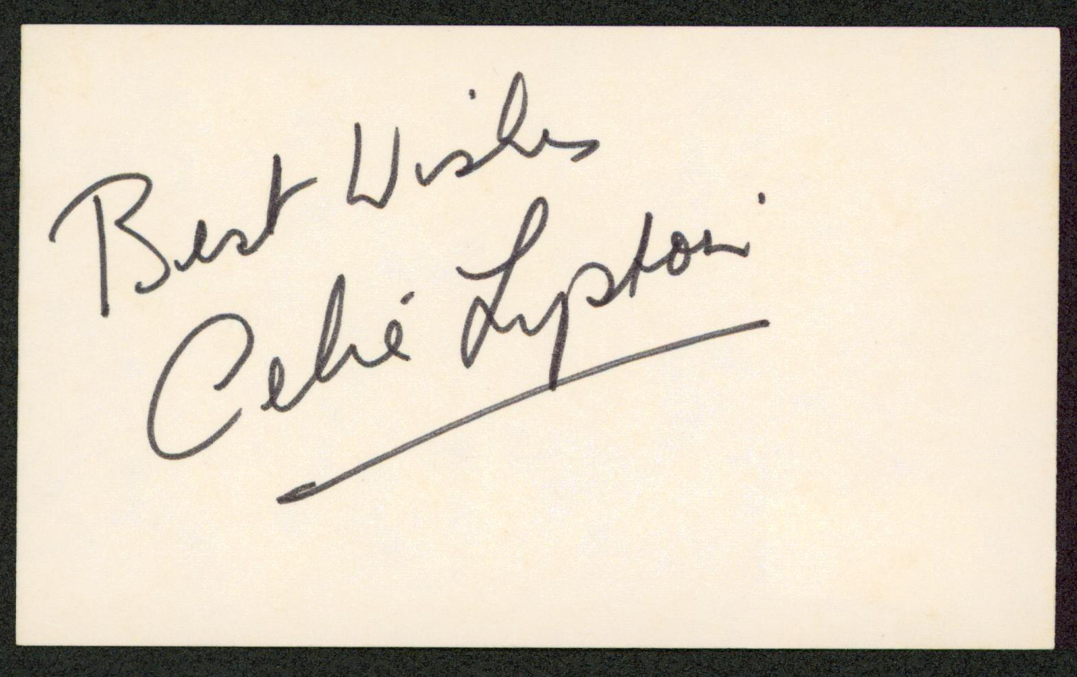 This Autographed 3x5 Index Card with the inscription of "Best Wishes" has been Personally Signed by Celia Lipton of This Was a Woman. This item is 100% Authentic to include a hologram by Beckett Authentication Services. This item will come with an affixed Beckett Authentication Services (BAS) authentication sticker, which includes a scannable QR code to verify authenticity. Please note that Beckett no longer provides serial-numbered COA cards, and the attached BAS sticker will serve as the complete authentication for this item. We have multiples of this same item. While the photographs are representative of this item, the size, placement and strength of the signature may vary. Each item is hand signed, therefore, each autograph is unique.