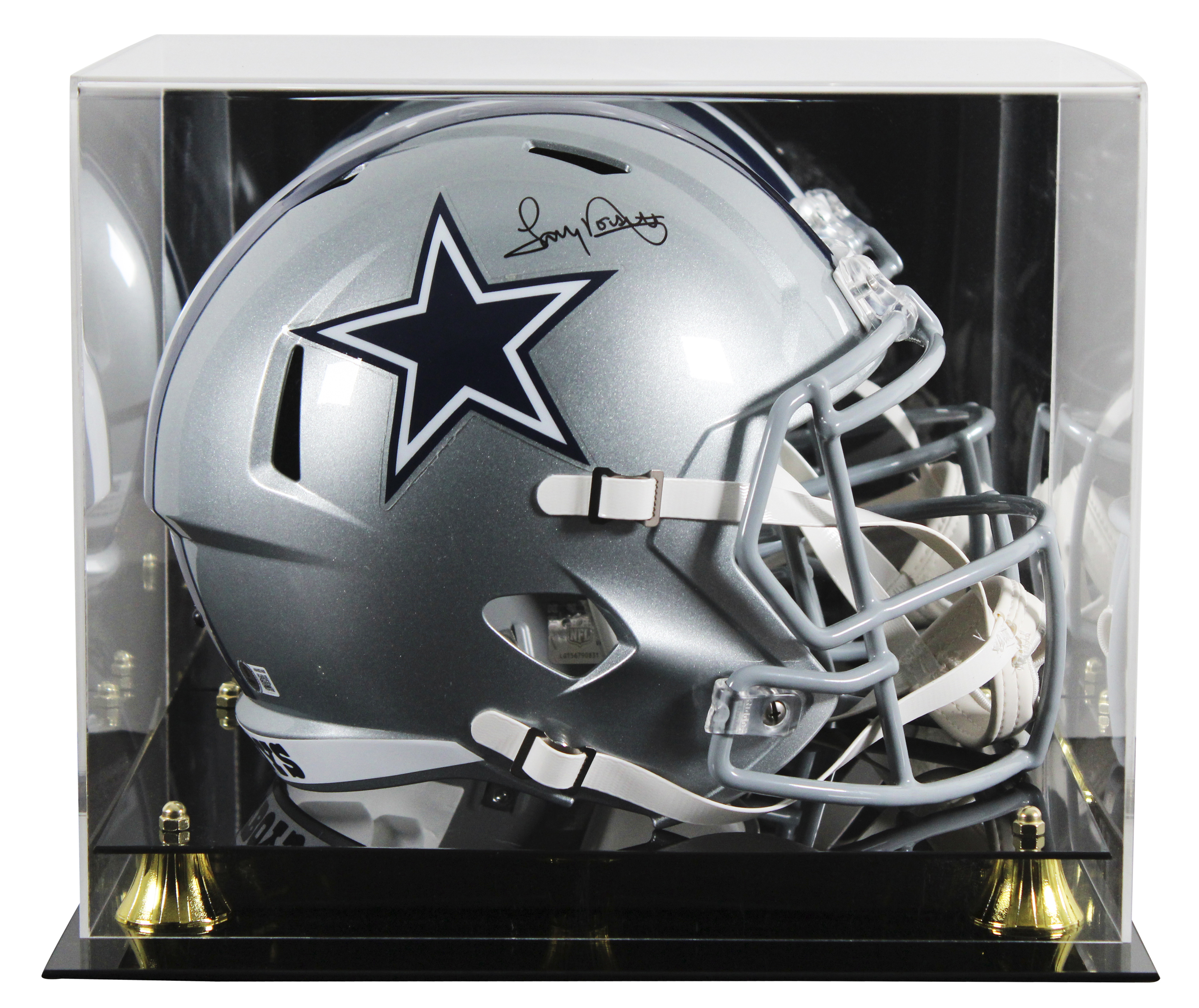 This Autographed Full Size Speed Rep Helmet W/ Uv Mirrored Back Acrylic Display Case has been Personally Signed by Tony Dorsett of the Dallas Cowboys. This item is 100% Authentic to include a hologram by Beckett Authentication Services. This item will come with an affixed Beckett Authentication Services (BAS) authentication sticker, which includes a scannable QR code to verify authenticity. Please note that Beckett no longer provides serial-numbered COA cards, and the attached BAS sticker will serve as the complete authentication for this item. This is a BAS Witnessed Protection Program item which means a Beckett Authentication Service representative was present when this item was being signed. We conducted an autograph signing with Tony Dorsett where multiples of the same item were signed. While the photographs are representative of this item, the size, placement and strength of the signature may vary. Each item is hand signed, therefore, each autograph is unique. This item can be verified through BAS Witnessed.